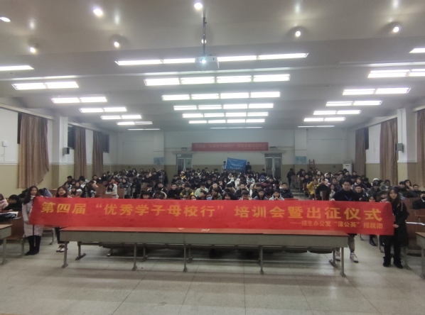 12月30日下午6时,东南大学成贤学院第四届“优秀学子母校行”活动培训会暨出征仪式在华罗庚馆召开。学生处副处长苏力老师,招生办公室徐姝老师及全体学生志愿者参加本次活动。