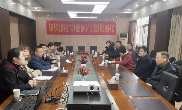 3月19日上午,东南大学成贤学院装配式建筑实训基地模块房屋(暂定名为3D大创活动中心)主体结构验收仪式在真知馆二楼会议室举行。江苏省住建厅产业推进办调研员韩建忠,东南大学成贤学院副院长戚易,东南大学成贤学院土木与交通工程学院院长郭正兴、党总支书记杨阳、常务副院长郭应征,建筑与艺术设计学院党总支副书记邵叶鑫,后勤管理处副处长丁秀山出席验收仪式。江苏省建筑产业现代化创新联盟会员单位南京嘉翼数字化增材研究院有限公司、昆仑绿建有限公司,土木与交通工程学院、建筑与艺术设计学院、后勤管理处等施工、设计团队的专家和老师共同出席仪式。验收仪式由土木与交通工程学院党总支书记杨阳主持。