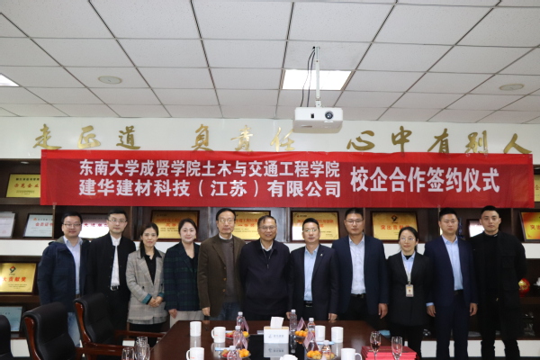 3月30日,土木与交通工程学院与建华建材科技(江苏)有限公司校企合作签约仪式在建华建材科技(江苏)有限公司举行。东南大学成贤学院土木与交通工程学院院长郭正兴、党总支书记杨阳、常务副院长郭应征、副院长温旭丽、院长助理石城、分团委书记赵毅,建华建材科技(江苏)有限公司总经理欧阳小星、副总经理兼住宅工业化市场部营销总监潘志超、总工程师顾明、人资部经理花丽娜、住宅工业化市场部市场总监金家威(土木与交通工程学院土木工程专业2010级校友)出席签约仪式。活动由建华建材科技(江苏)有限公司人资部经理花丽娜主持。