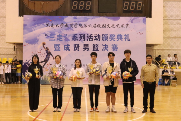 5月21日晚,由校团委主办,校学生会体育部承办的第六届校园文化艺术节“三走”系列活动颁奖典礼暨男篮决赛在后藤体育馆举办。东南大学成贤学院团委书记、人武部部长潘明烽,制药与化学工程学院综合办主任刘静,制药与化学工程学院分团委书记刘庆,机械与电气工程学院辅导员赵小宁,校团委老师冯杭州以及500余名学生共同参加了此次活动。