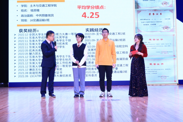 3月10日,土木与交通工程学院"砼心筑梦,一路芳华"2023年春季全体学生大会在综合楼报告厅成功举办,东南大学成贤学院常务副院长黄学良,土木与交通工程学院院长郭正兴、党总支书记杨阳,副院长郭应征、温旭丽,土木与交通工程学院全体教职工以及优秀校友代表、校企合作单位代表,2022级新生共计600余人参加了此次活动。与此同时,大会通过微赞直播间向未能到场的学生、学生家长和校友进行同步直播,直播间在线人数达2000余人。