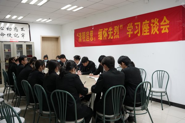 当日下午,校团委组织各级学生干部代表在大学生活动中心315会议室开展“清明追思,缅怀先烈”座谈会。会上,同学们积极发言表达了对先烈的敬意,以及参观纪念馆的感悟。同学们纷纷表示,沉浸式的参观学习是一堂刻骨铭心的思政课,更加深入了解了那段艰苦卓绝的抗战史和革命史,了解了革命先烈全心全意为人民服务的崇高风范,深切感知革命成果与和平安定的来之不易,在今后的学习和工作中,要牢记历史、不忘过去,更好传承红色基因,汲取开拓前进的精神力量,继承革命先烈的光荣传统,吃苦耐劳、艰苦奋斗,坚定红色信仰,在新征程上履行好“争当表率、争做示范、走在前列”的光荣使命。“历史是最好的教科书,也是最好的清醒剂。”以史为鉴,以尊崇之心珍视和平、以民族之力矢志复兴。壮士捍山河,清明祭英烈。校团委开展主题教育活动,引导我校广大团员青年缅怀为中国人民抗日战争胜利献出生命的革命先烈和民族英雄,追寻革命先烈遗志,体悟英烈崇高理想,更好激励广大团员青年汲取精神养分,铭记历史,弘扬英烈精神,进一步坚定初心使命和理想信念,在新时代砥砺新担当、展现新作为。