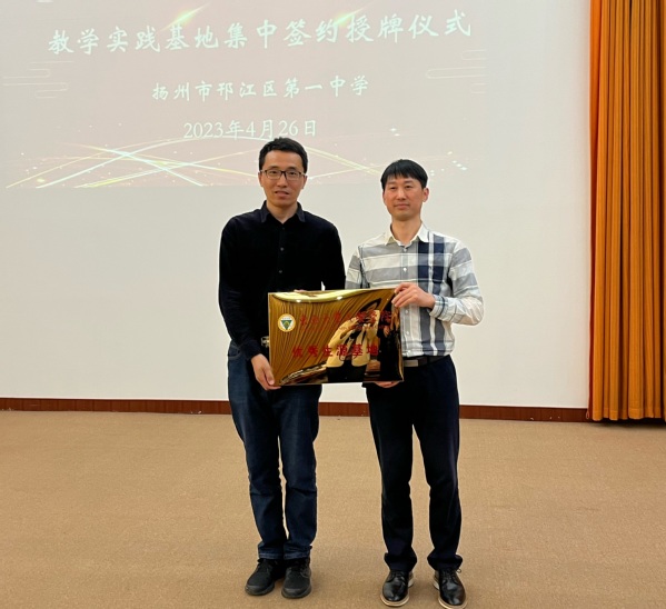 为进一步加强我校优秀生源基地建设,持续深化与中学师生交流,提升学校影响力,吸引更多优秀生源。4月26日,我校应扬州市邗江区第一中学邀请,参加“合作谋发展、协力育人才”合作共建签约授牌仪式。学生处副处长苏力、制药与化学工程学院党总支副书记周继荣、综合办主任刘静参加了仪式。