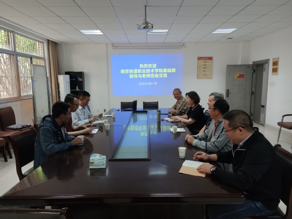 5月18日上午,南京铁道职业技术学院基础教学部直属支部书记、主任吴宝明,副主任龙章勇,数理教研室主任陈大鹏及数学教研室冯再勇老师一行,来我校基础部调研,了解应用型本科院校基础课程设置与教学要求、实验室建设等情况。基础部部长刘须明、副部长张福保、综合办主任房振伟,数学教研室主任郁大刚、物理教研室主任白磊及物理实验室主任张礼等参加交流活动。
