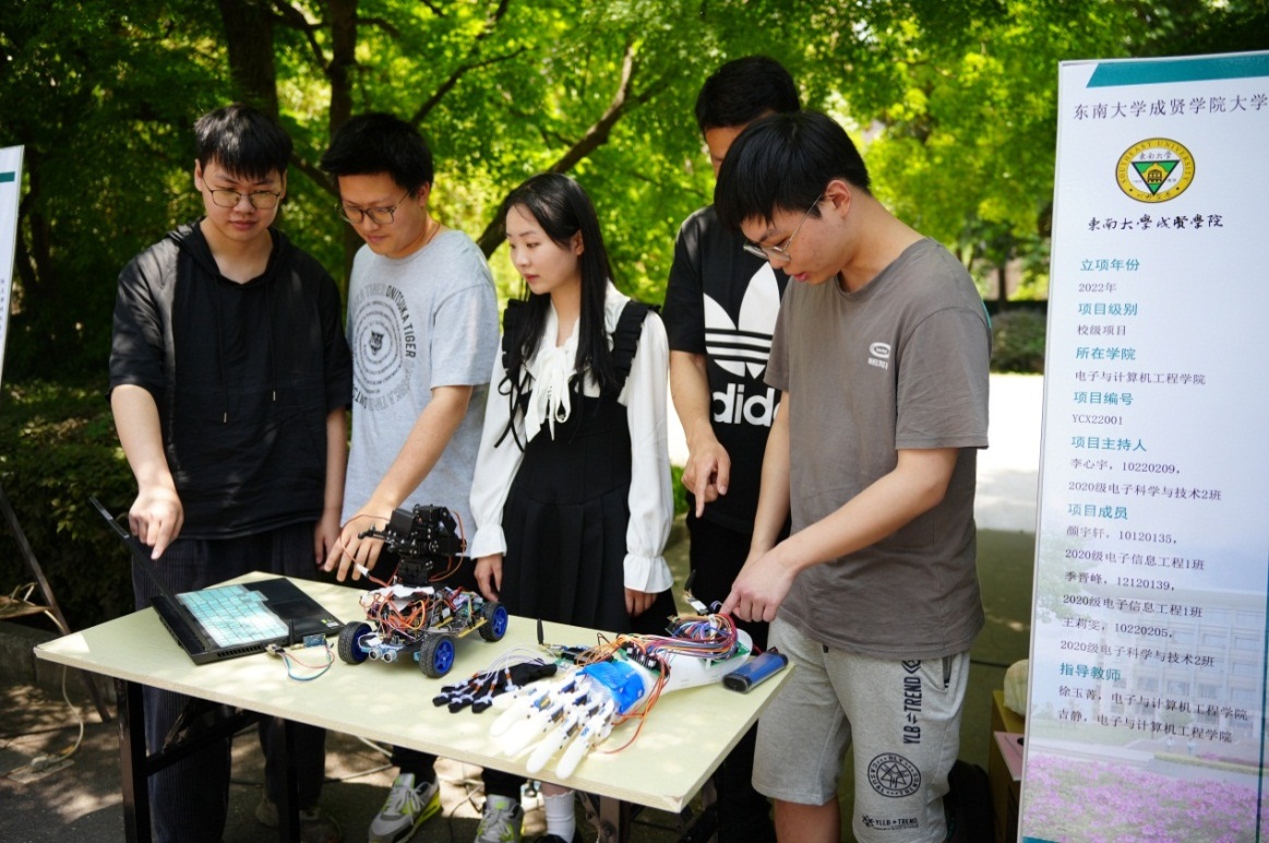 5月19日,由东南大学成贤学院教务处、校团委主办,校团委科技创新创业部协办的大学生实践创新训练项目成果展在校园内成功举办,51个项目组多角度展现了我校大学生实践创新的成果。学校相关职能部门和二级学院负责人参加了成果展示会,申报2023年大学生创新实践训练计划的项目组成员、指导老师到现场观摩学习。