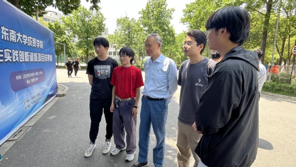 电子与计算机工程学院党总支书记季永华与学生一起参观大学生实践创新项目成果