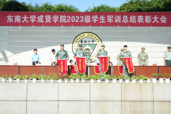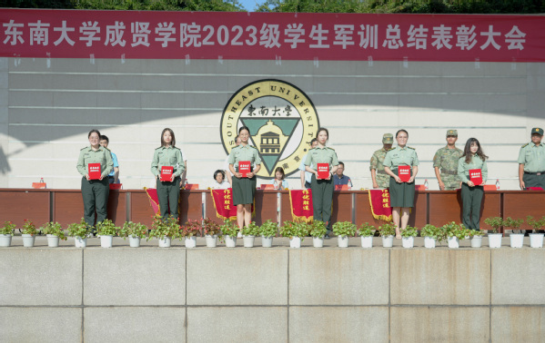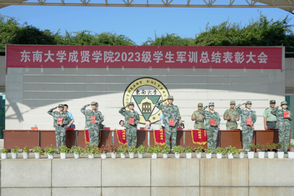 9月9日上午8:00,东南大学成贤学院2023级新生军训总结表彰大会在田径场隆重举行。学校党委书记张志胜,常务副院长黄学良,党委副书记、副院长、纪委书记王荣,党委学工部部长施杰,后勤管理处副处长丁秀山,2023级军训团团长隋军,军训团副团长张维出席大会。各连排承训教官、各学院党总支书记、综合办主任、新生辅导员、2023级全体新生参加了大会。大会由人武部部长潘明烽主持。