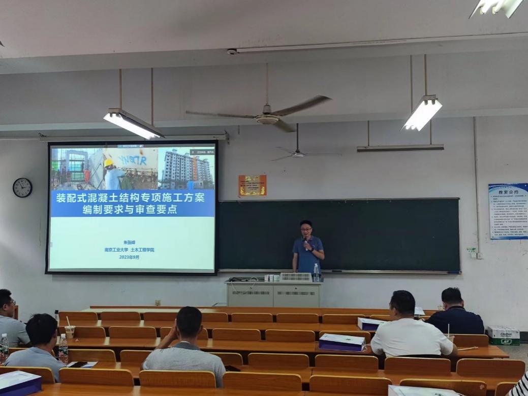 理论部分培训分别邀请江苏省职业技能鉴定中心鉴定考核科科长朱政作“技能人才评价工作介绍”,江苏建联建筑产业现代化研究院院长樊骅作“装配式建筑施工员职业技能考核规范解读”,江苏建联建筑产业现代化研究院总工程师贺鲁杰作“预制混凝土构件生产的理论知识和实操要点讲解”,东南大学成贤学院土木与交通工程学院院长郭正兴教授作“装配式建筑施工质量控制与安全技术讲解”,南京工业大学土木工程学院朱张峰副教授作“装配式混凝土结构专项施工方案编制要求与审查要点讲解”。