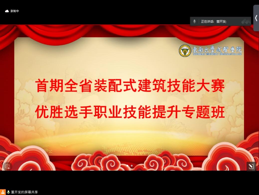 为进一步加强建筑产业现代化人才培养,推动建筑业转型升级,加快装配式建筑技能的规范化、普及化,由江苏省建筑产业现代化促进会主办,东南大学成贤学院土木与交通工程学院、江苏建联建筑产业现代化研究院有限公司承办的“首期全省装配式建筑技能大赛优胜选手职业技能提升专题培训班”在东南大学成贤学院顺利举行。