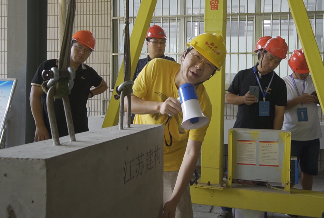 实操部分于土木与交通实验实训中心举行,东南大学成贤学院土木与交通工程学院院长郭正兴教授对实验室多组合结构装配式模型进行了现场讲解,南京大地建设集团有限公司总工程师诸国政进行了预制剪力墙板吊装的实操演示,江苏华江建设集团有限公司实验室主任、“江苏工匠”、“扬州市五一劳动奖章”、“第二届全国装配式建筑职业技能竞赛预制构件套筒灌浆冠军”获得者潘正良进行了预制柱灌浆作业的实操演示。