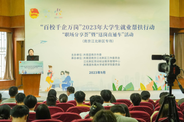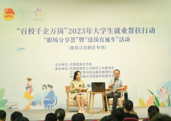 9月20日,由共青团南京市委主办,共青团南京江北新区工作委员会、江北新区劳动就业服务管理中心、共青团东南大学成贤学院委员会承办的“百校千企万岗”大学生就业帮扶行动“送岗直通车”直播荐岗活动在我校真知馆报告厅举行。