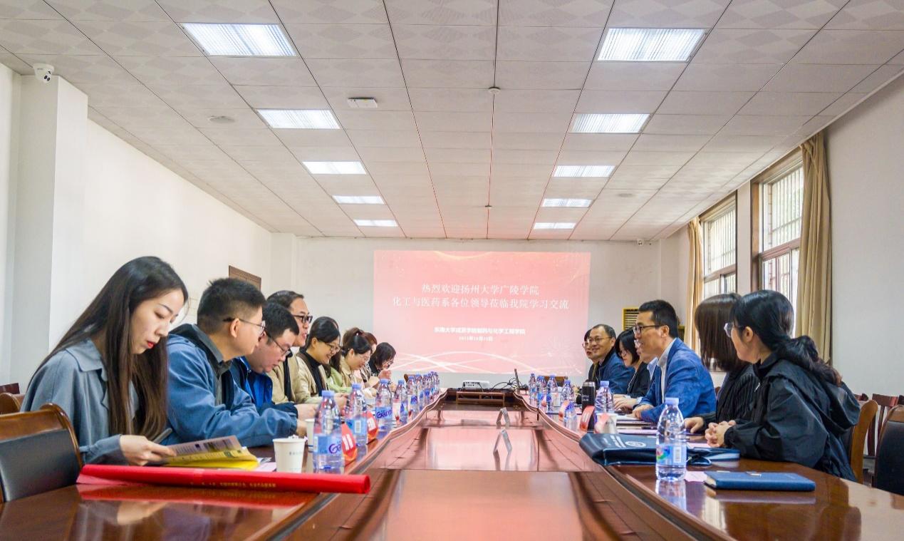 10月20日上午,扬州大学广陵学院化工与医药系党总支书记、主任张志萍,党总支副书记倪若花、副主任单青一行10人来我校考察交流。制药与化学工程学院院长林保平、党总支书记周继荣、副院长刘媛媛、综合办主任刘静和相关系老师接待了来宾并进行了交流。交流会由周继荣书记主持。