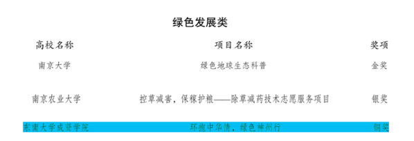 近日,由共青团江苏省委和江苏省青年志愿者协会联合开展2023年江苏省高校青年志愿服务项目大赛路演答辩在南京邮电大学仙林校区进行,我校“怀抱中华情,绿色神州行”志愿服务项目荣获绿色发展类铜奖。