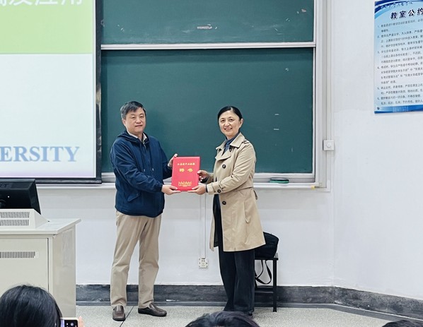 电子与计算机工程学院王晓蔚院长向王宏宇颁发江苏省产业教授聘书
