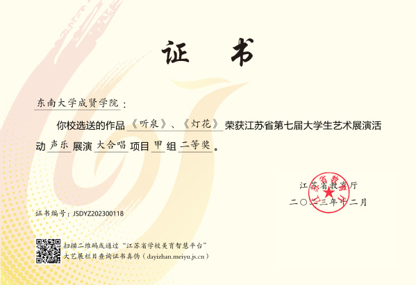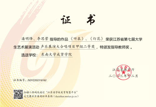 艺术表演类声乐项目合唱二等奖《灯花》《听泉》