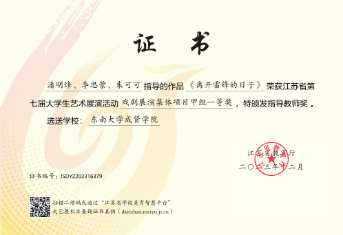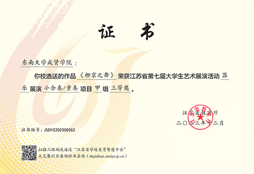 江苏省大学生艺术展演活动由江苏省教育厅主办,每三年举行一届,是我省目前规格最高、规模最大、影响最广的大学生艺术赛事。本届展演活动自启动以来,学校领导高度重视,校团委、大学生艺术指导中心精心筹备、组织召开工作协调会,指导教师与参赛学生们锐意进取、全力以赴,以高度的责任感和饱满的参赛热情打造具有成贤特色的高质量艺术作品,充分彰显了我校美育工作的育人实效和成贤学子昂扬向上、朝气蓬勃的青春风采。