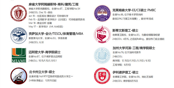 *以上美国项目DDL为2024秋入学,如果申请2025秋入学请顺延一年。