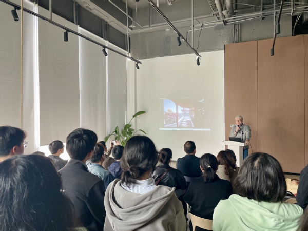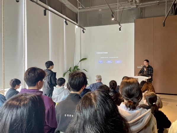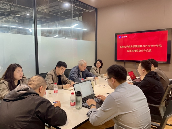 在去年双方共同签订校企合作协议书,并挂牌“东南大学成贤学院建筑与艺术设计学院就业实习实践基地”的良好基础上,建艺学院师生此行深入了解了南京维伍网络科技有限公司的发展历程、现状和愿景,聆听了《D5数智化重构设计工作流》专题介绍会,了解了企业最新的研发成果和产品优势。例如D5 Hi 能够智能生成图像、助力深化概念的创作,是一款AI空间概念设计工具。D5渲染器作为该企业的核心产品,前期对专业教学改革和专业建设起到了较好的促进作用,建艺学院常务副院长杨冬辉从室外和景观角度分享了自己在实际工程和教学运用的使用体验,并提出优化建议。随后校企双方进行了多次互动和深度交流,有效解答了师生们的疑问。