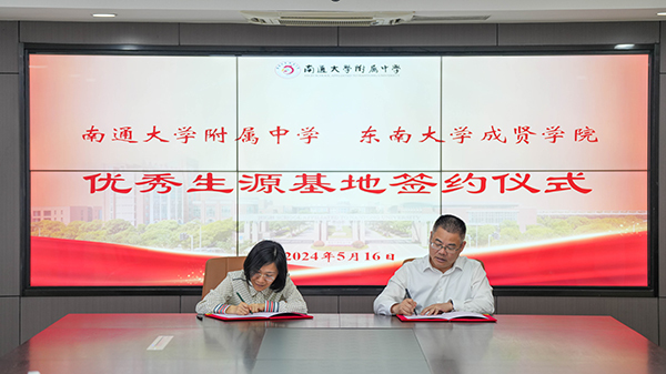 与南通大学附属中学签订《东南大学成贤学院优秀生源基地建设协议书》
