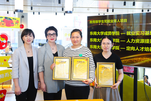 2023年底,东南大学成贤学院经济管理学院与金拱门(中国)有限公司成功申报教育部高校学生司供需对接就业育人项目。校企双方共同为就业实习基地、定向人才培养培训和人力资源提升项目揭牌,标志着合作正式启动。