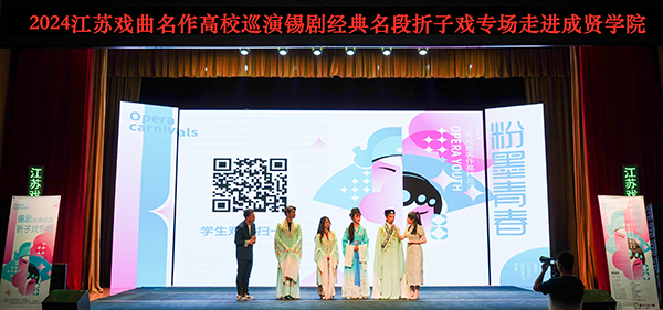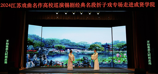 5月22日晚,由省委宣传部、省教育厅主办,校团委大学生艺术指导中心承办,无锡市锡剧院创排演出的“粉墨青春”2024江苏戏曲名作高校巡演锡剧经典名段折子戏专场在我校综合楼报告厅举办。我校600余名师生共同欣赏了本次精彩演出。
