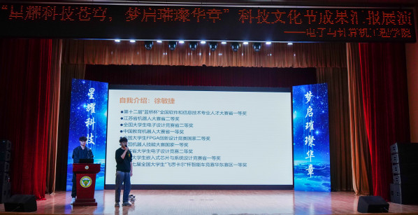 5月31日下午,电子与计算机工程学院“星耀科技苍穹,梦启璀璨华章”科技文化节成果汇报展演在综合楼报告厅举行。东南大学成贤学院党委副书记、副院长、纪委书记王荣,学生处处长施杰,团委书记、纪检监察室主任、校友会秘书长潘明烽,电子与计算机工程学院执行院长王晓蔚、党总支副书记羊栋、2009届优秀校友李海波,师生代表等600余人出席活动。活动由电子与计算机工程学院分团委、学生会承办。