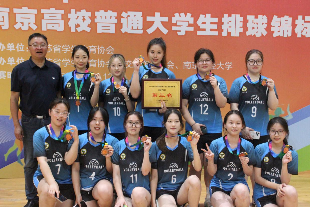 6月1日—12日,2024年南京高校普通大学生排球锦标赛在南京财经大学成功举办,我校派出男、女排球队共二十四名同学参加。来自南京的20多所高校四十多支队伍同台竞技,经过激烈角逐,我校女子排球队荣获第三名,实现我校在该项赛事中的新突破。