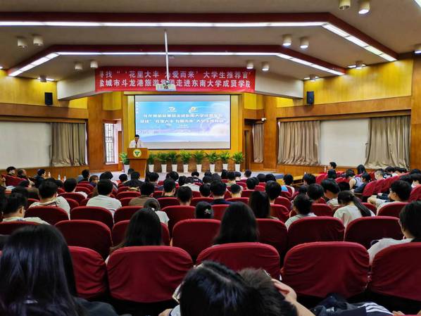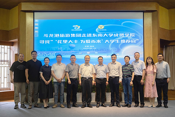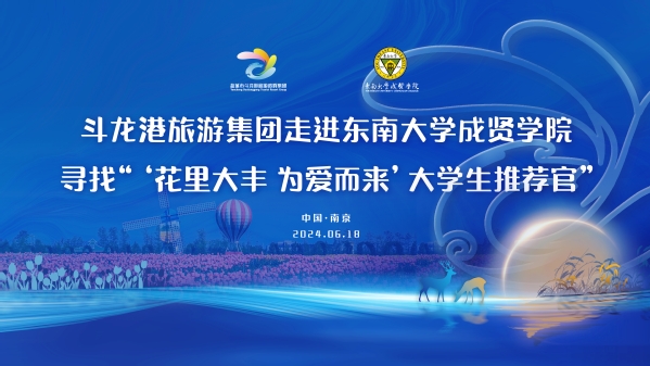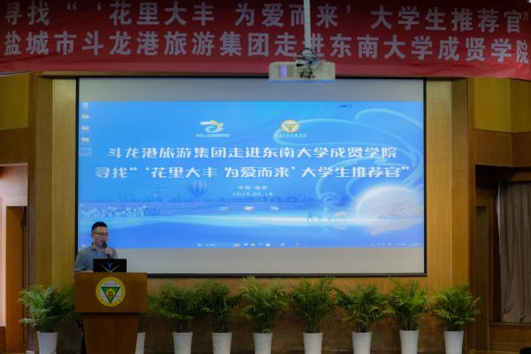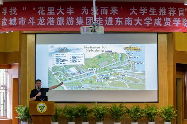 6月18日下午,盐城市斗龙港旅游度假集团走进东南大学成贤学院,开展“寻找‘花里大丰,为爱而来’大学生推荐官”推介会。东南大学成贤学院党委书记张志胜,党委副书记、副院长、纪委书记王荣,斗龙港旅游集团党委副书记、总经理李波等领导出席了活动。