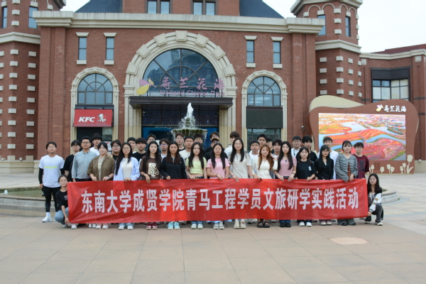 东南大学成贤学院青马工程学员文旅研学实践活动合影(荷兰花海)