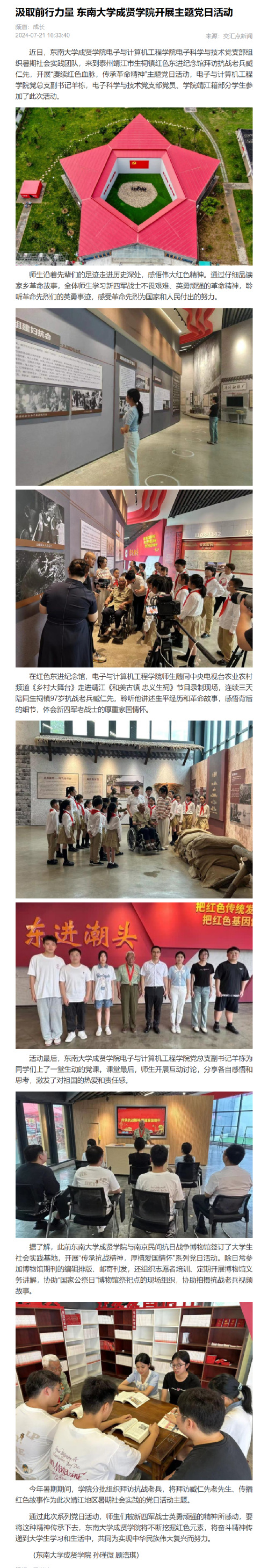【交汇点】汲取前行力量 东南大学成贤学院开展主题党日活动