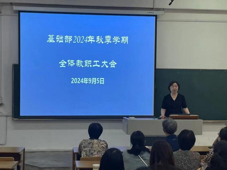 9月5日,基础部在成贤院113室召开23—24学年秋季学期全体教职工大会。会议分为两个阶段,第一阶段内容为基础部领导总结与部署上一学年工作与新学期工作;第二阶段内容为对教师进行关于在课程教学中如何运用AI技术的培训。会议由基础部部长刘须明主持。
