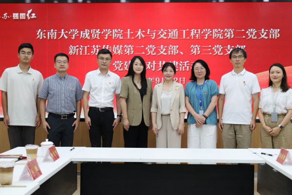 9 月 12 日,我校土木与交通工程学院党总支书记杨阳,党总支委员石城、陆凡华,第二党支部书记赵毅前往新华报业传媒集团,与新江苏传媒党总支举行了一场意义深远的共建活动。新江苏传媒党总支书记叶春燕、第二党支部书记陈岩、第三党支部书记潘军艳及支部党员对我院杨书记一行给予了热情接待。