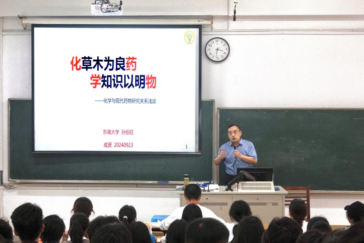 9 月23日下午,东南大学化学化工学院教授、博士生导师孙伯旺面向全院制药工程专业学生,以“化草木为良药,学知识以明物——化学与现代药物研究关系浅谈”为主题,系统介绍了药物的原始、萌芽阶段和经验时期,化学合成药物的出现和发展,以及对天然植物的深入研究,并指出未来药物研发的发展趋势以及面临的挑战。