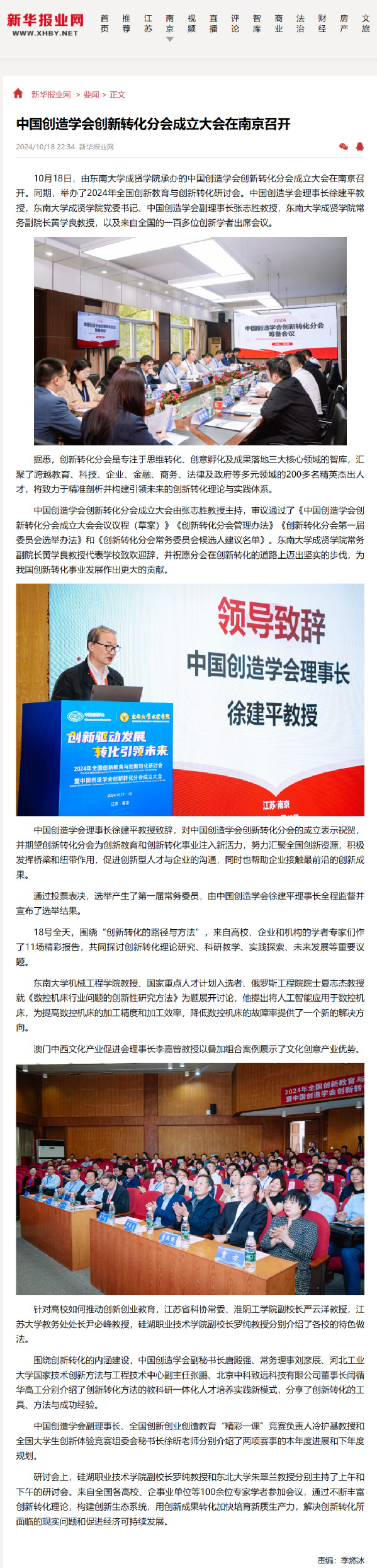 【新华报业网】中国创造学会创新转化分会成立大会在南京召开
