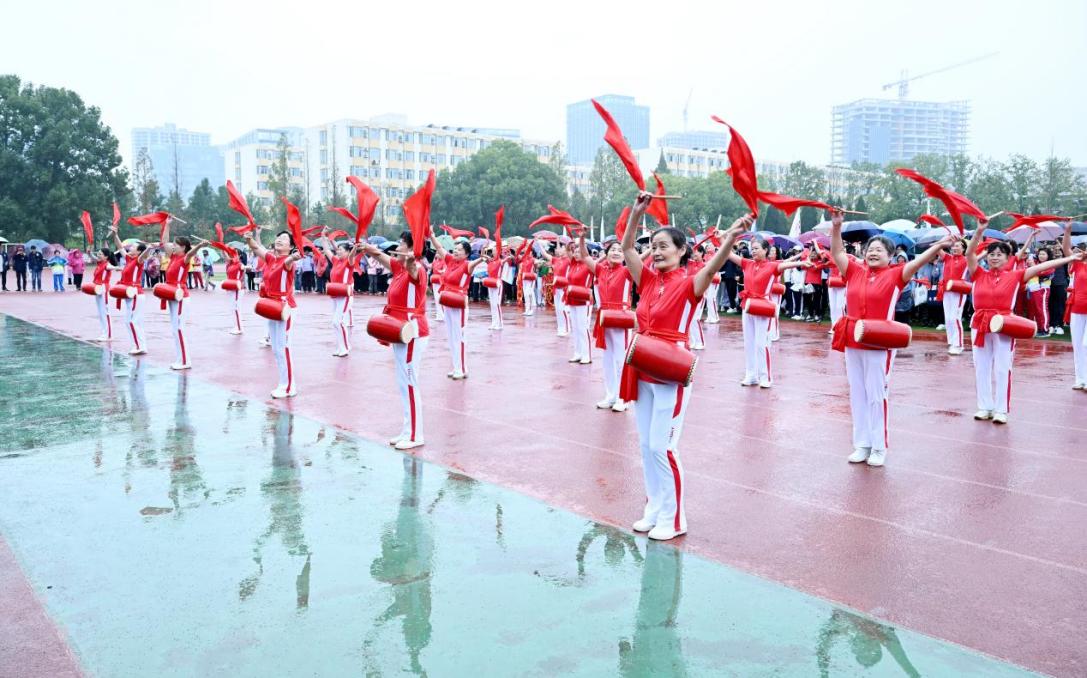开幕式上东南大学离退休老同志们带来腰鼓表演“龙飞凤舞”