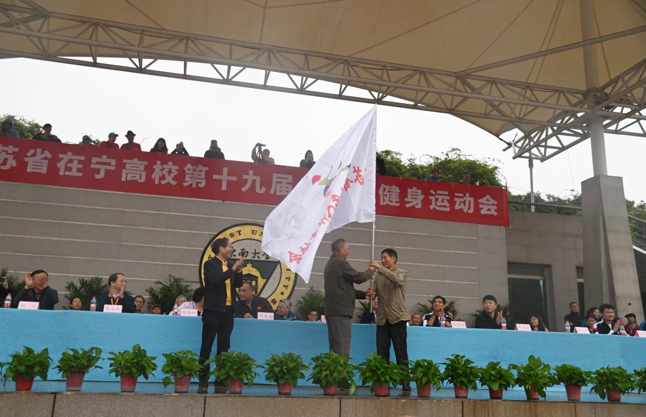 开幕式上,东南大学党委常务副书记刘攀致欢迎辞,他代表东南大学党政对江苏省在宁高校老年人体育协会的悉心指导、25所高校退休教职工们的积极参与、协办方东南大学成贤学院党政领导、老师与所有在现场的裁判员、运动员、工作人员与志愿者表示衷心的感谢。他提出,老年人健身运动会充分展现了老年人较好的精神风貌,希望老年同志们展现最佳状态,取得最佳成绩。江苏省在宁高校老年人体育协会李国荣理事长致辞,他介绍了历届江苏省在宁高校老年人运动会举办情况,勉励在场老年同志保持健身热情,保证人身安全,赛出最佳状态。在宁高校第十九届老年人健身运动会总裁判长徐南强对赛事安排作了相关说明。随后进行了运动会会旗交接仪式。最后,江苏省老年人体育协会副会长陈建安宣布江苏省在宁高校第十九届老年人健身运动会开幕。