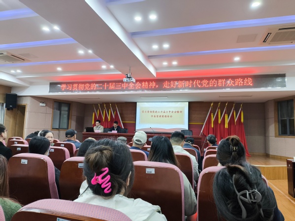 为凝聚思想共识,强化使命担当,10月26日,经济管理学院党总支组织师生党员前往共建单位沿江街道路西社区参加学习贯彻党的二十届三中全会精神专题党课活动。南京市委宣讲团成员蒋明敏教授担任主讲。