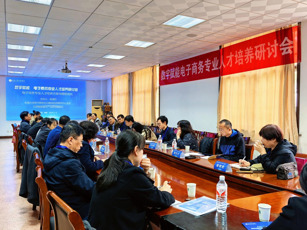 11月9日,由东南大学成贤学院、东南大学电子商务与互联网经济研究中心联合主办,东南大学成贤学院经济管理学院承办,江苏省智新产业数字化研究院、南京数字经济科技学会协办的“2024数字赋能电子商务人才培养研讨会”在东南大学成贤学院真知馆报告厅成功举办。本次研讨会聚焦于数字经济及技术变革背景下,电子商务专业面临的挑战与机遇,并探讨如何培养适应新时代需求的电子商务专业人才。