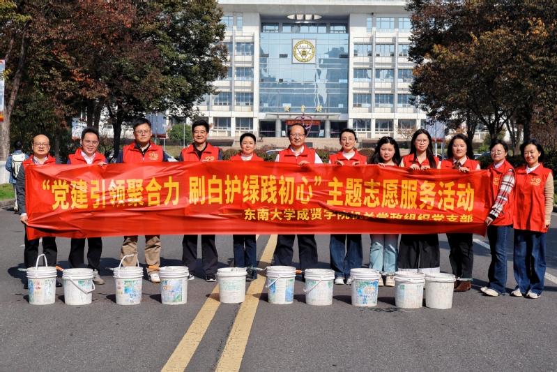 为增强校园树木防虫抗寒力,强化党员同志的责任意识和服务能力,提升党支部的凝聚力,11月14日上午,东南大学成贤学院机关党政组织党支部开展了“党建引领聚合力、刷白护绿践初心”主题志愿服务活动。学院党委书记张志胜同志以普通党员身份参加。