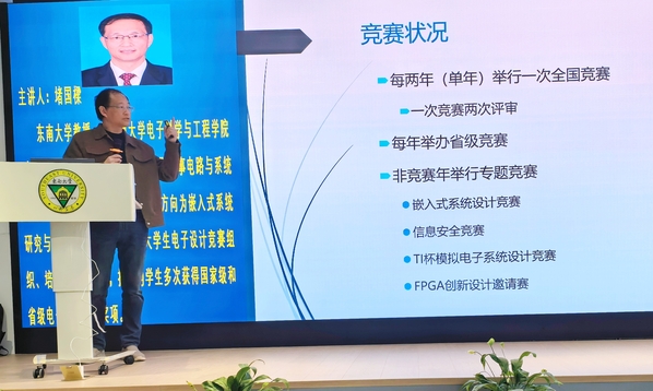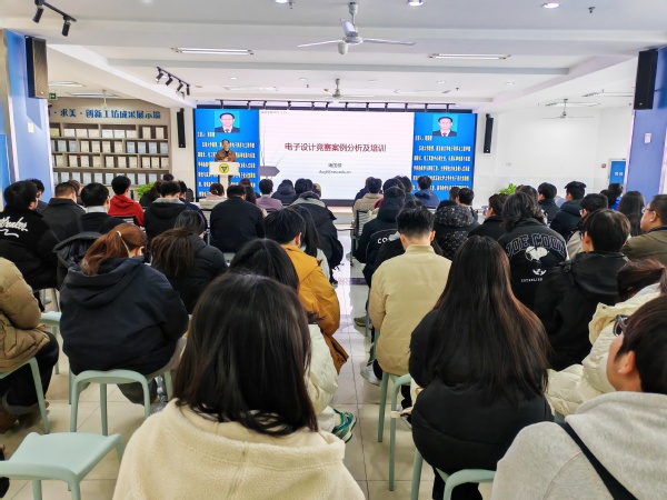 为提升学生的电子设计能力和创新实践水平,3月19日,电子与计算机工程学院特邀东南大学堵国樑教授在求真·求美·创新工坊开展“电子创新与竞赛案例解析”专题讲座,参与竞赛指导工作的老师与160多名对电子设计竞赛感兴趣的同学聆听了讲座。