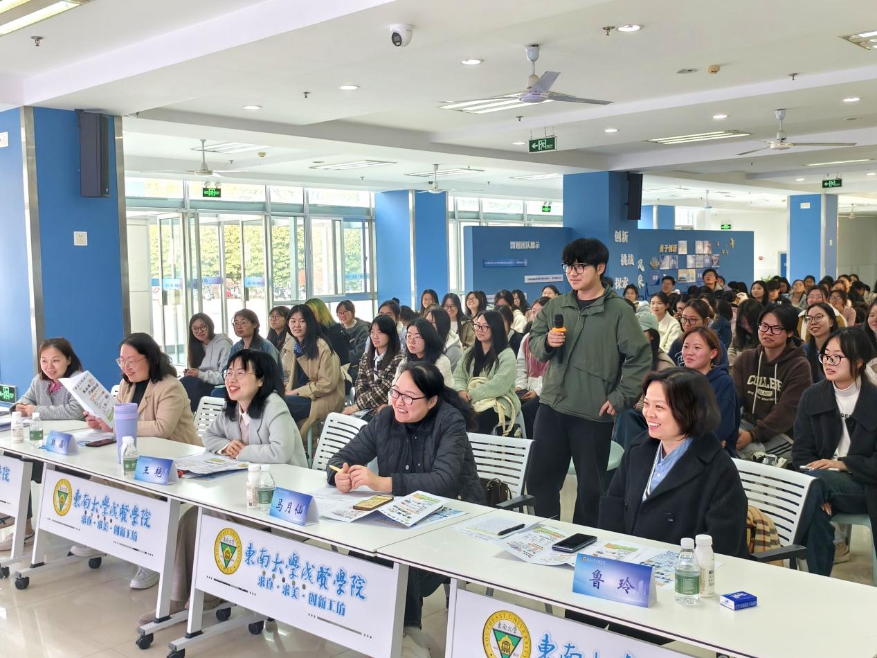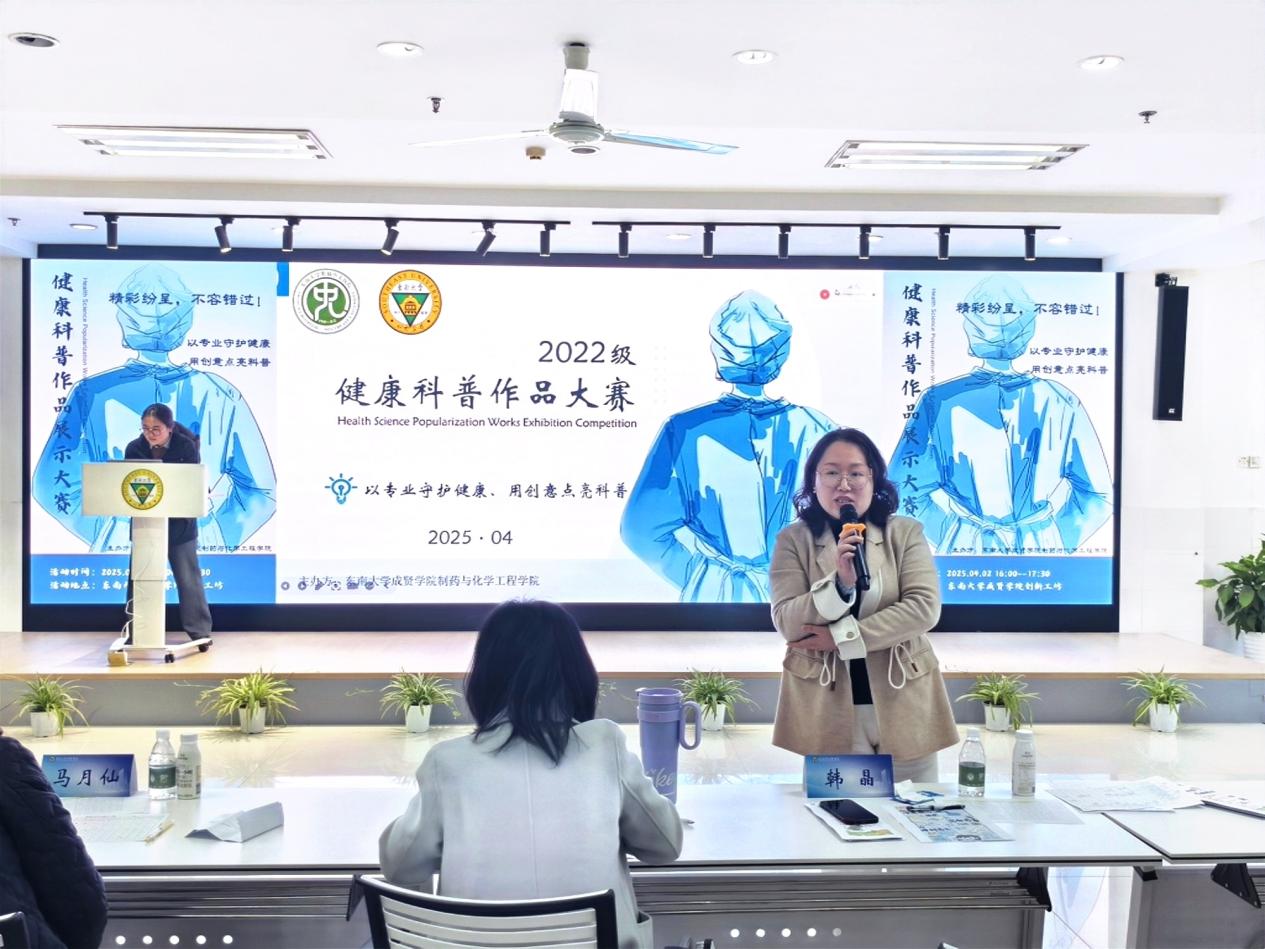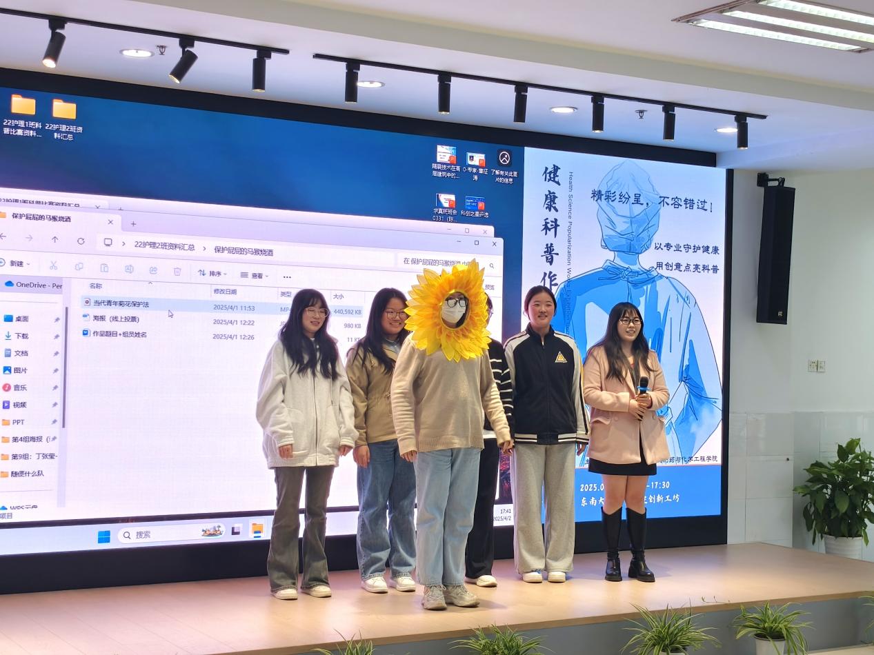 为深入贯彻落实“健康中国2030”规划纲要,深化护理专业教育教学改革,培养具有创新精神和实践能力的高素质护理人才,2025年4月2日,制药与化学工程学院在求真·求美·创新工坊举办2025年健康科普作品展示大赛。本次大赛面向2022级全体护理学生,吸引了11支参赛团队、共计60余名学生积极参与。东南大学医学院护理学系鲁玲、王艳、韩晶、马月仙、金晓灵五位老师担任评委,2023级护理学生全程观摩并参与现场投票。
