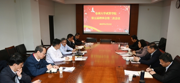 4月23日,东南大学成贤学院第五届理事会第二次会议在东南大学九龙湖校区召开。东南大学党委副书记、成贤学院理事会理事长邢纪红,东南大学副校长、成贤学院理事会副理事长钟文琪,全体理事及监事与会。邢纪红理事长主持会议。