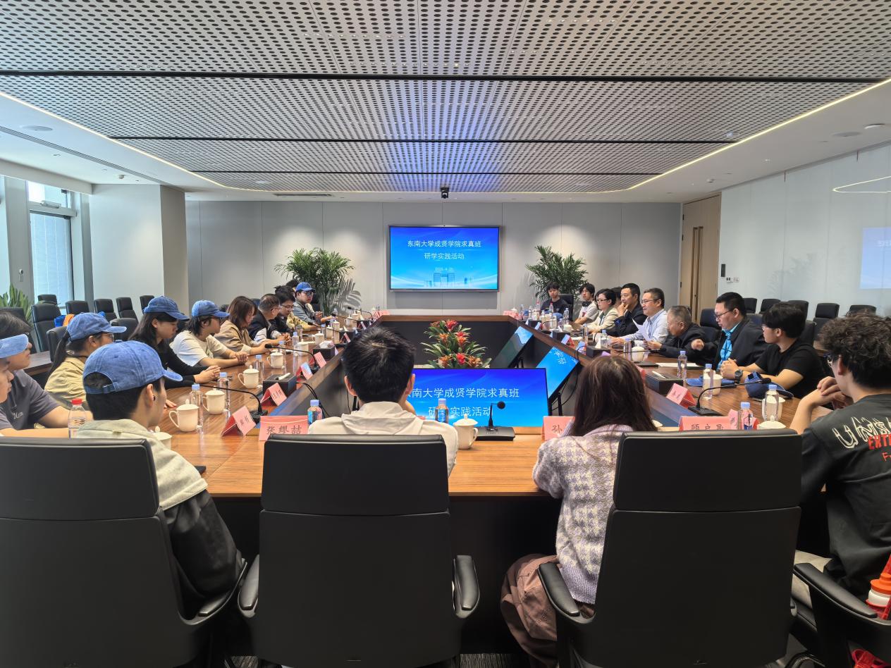 在城建广场3号楼会议室内,戴壮民副书记致欢迎辞,高度评价东南大学成贤学院在土木工程领域的人才培养成果,并强调校企协同育人对建筑行业创新发展的重要意义。郭正兴院长代表学院感谢江苏华建的精心组织,指出求真班的建设核心在于培养“知行合一”的创新型人才,此次研学拓宽了学生的行业认知边界,是求真班深化产教融合的重要实践。