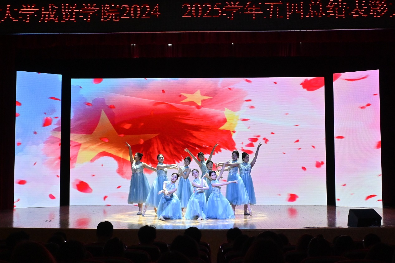舞蹈《芳华》宛如一首跃动的诗篇,将青春的瑰丽与炽热娓娓道来;《闪光如你》以一场关于青春的歌舞,在光影交织中徐徐铺陈。《文明之光志愿中国》身披红马甲的志愿者们用朗诵诉说初心与信仰,致敬永不褪色的志愿青春;最后朗诵者们身姿挺拔如松,以铿锵之声开启《我愿为此奋斗终生》的青春宣言,将个人志向与家国情怀交织共鸣。