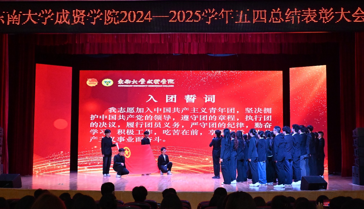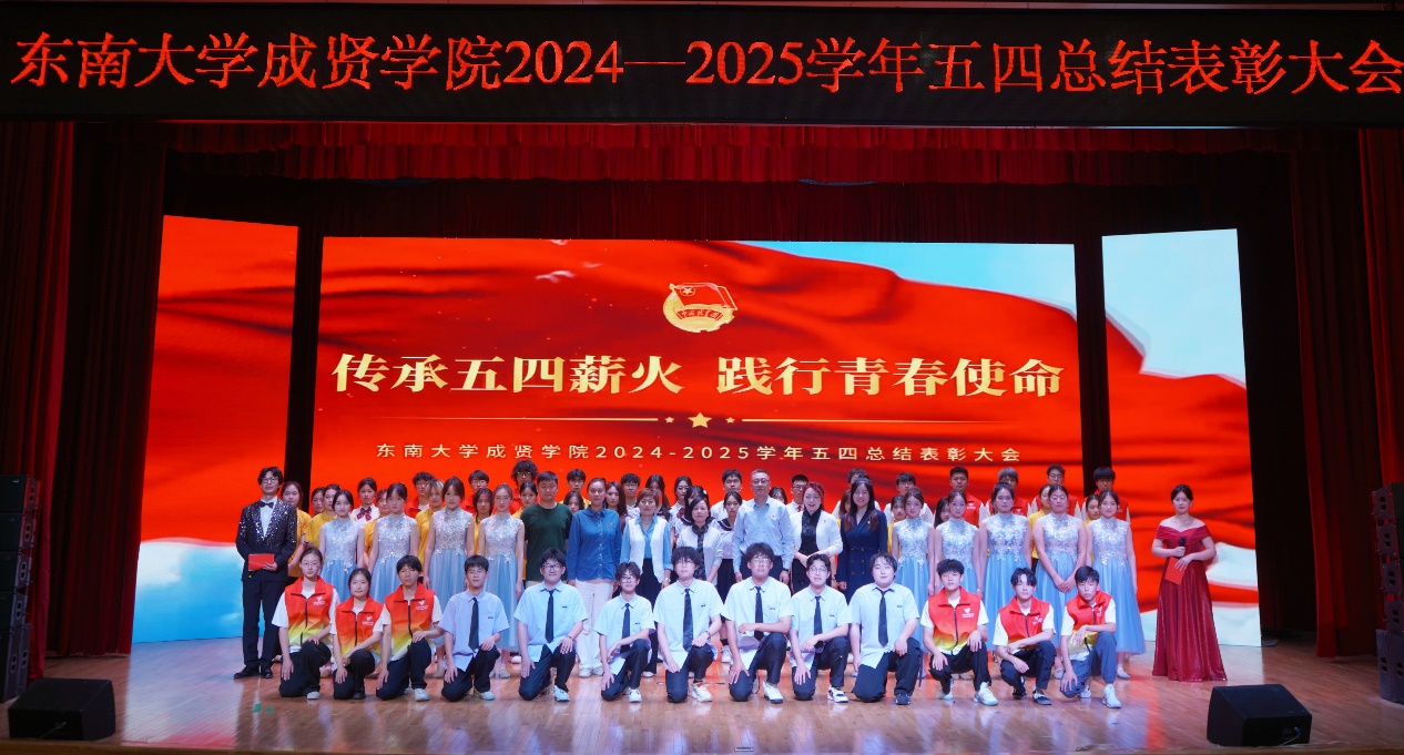 在纪念“五四运动”106周年之际,为深入学习贯彻习近平新时代中国特色社会主义思想,激励和动员全院广大青年继承和发扬五四精神,全面展现我院青年学生奋发进取的精神风貌,进一步引导更多青年在中华民族伟大复兴征程中贡献青春力量,5月8日晚,东南大学成贤学院团委在综合楼313报告厅举办“传承五四薪火,践行青春使命”2024-2025学年五四总结表彰大会。东南大学成贤学院副院长戴玉蓉,团委书记、人武部部长潘明烽,学生处副处长沈黎芳,各学院分团委书记、辅导员老师和学生获奖代表约600人参加了大会。