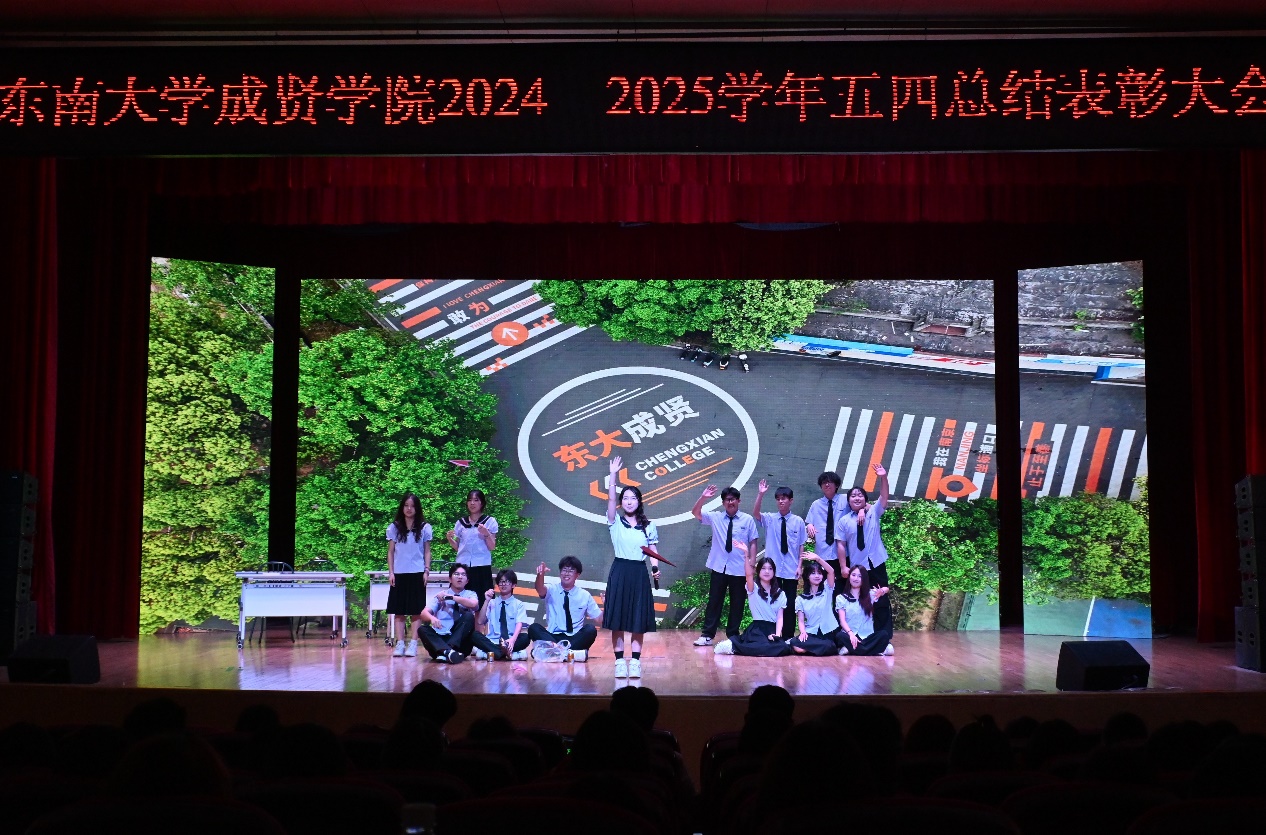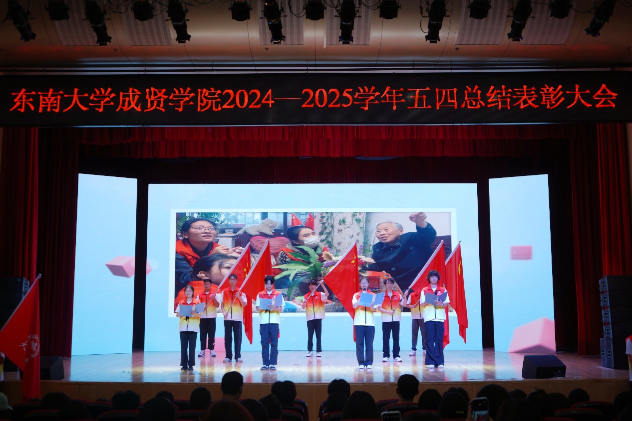 在颁奖仪式上,校团委书记潘明烽宣读了《关于东南大学成贤学院2024—2025学年五四表彰决定》,与会领导为获奖的先进集体和个人颁奖。