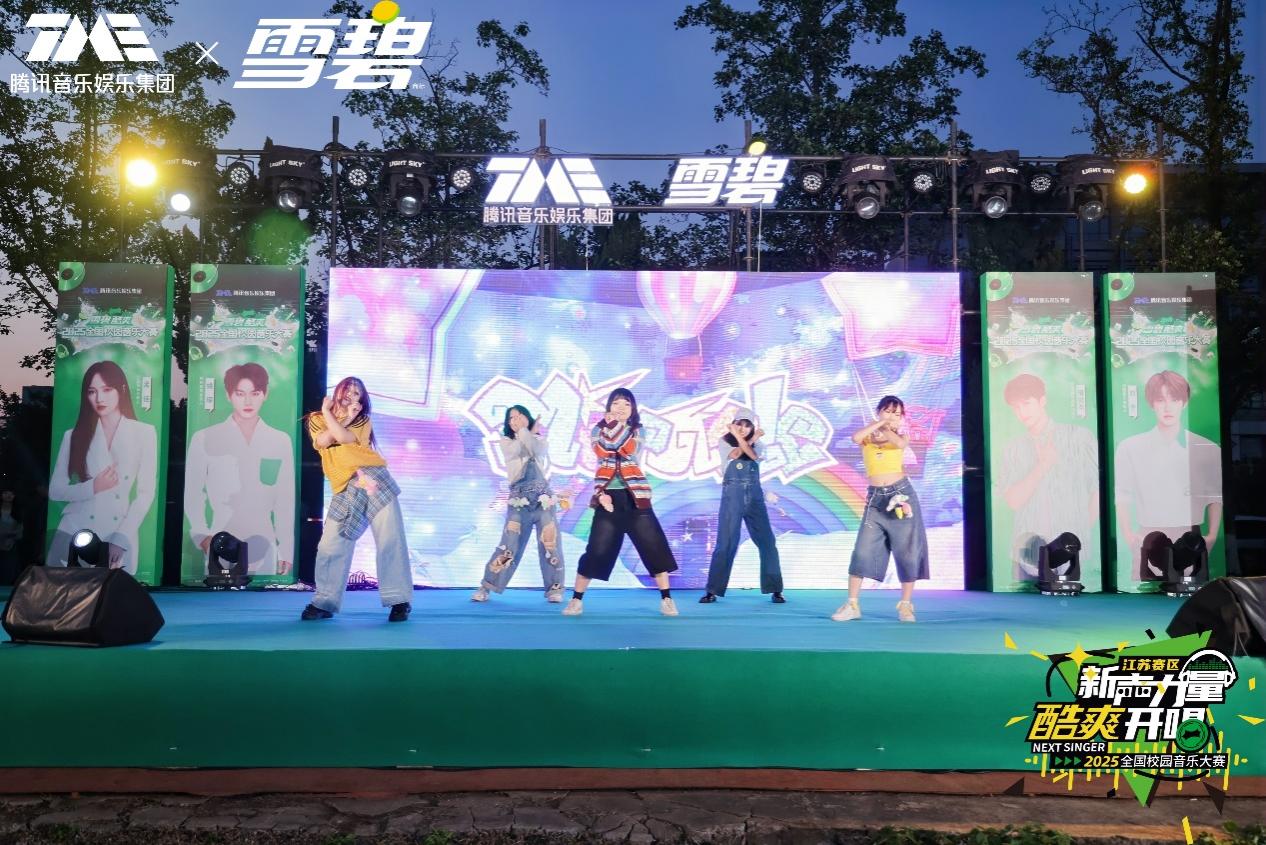 音乐节在热烈的氛围中拉开帷幕。街舞社成员率先登台,一段动感十足的爵士舞蹈《say my name》瞬间嗨翻全场,其独特韵律与奔放舞姿,引得观众欢呼连连。紧接着几组女团、男团带来了《Body》《whiplash》《Rumor》《love is dead》《Talk Saxy》《Miracle》等精彩舞蹈,他们用青春活力的形象、精心编排的舞蹈,尽情释放着KPOP的独特魅力,让现场观众沉浸在节奏与激情交织的世界里。