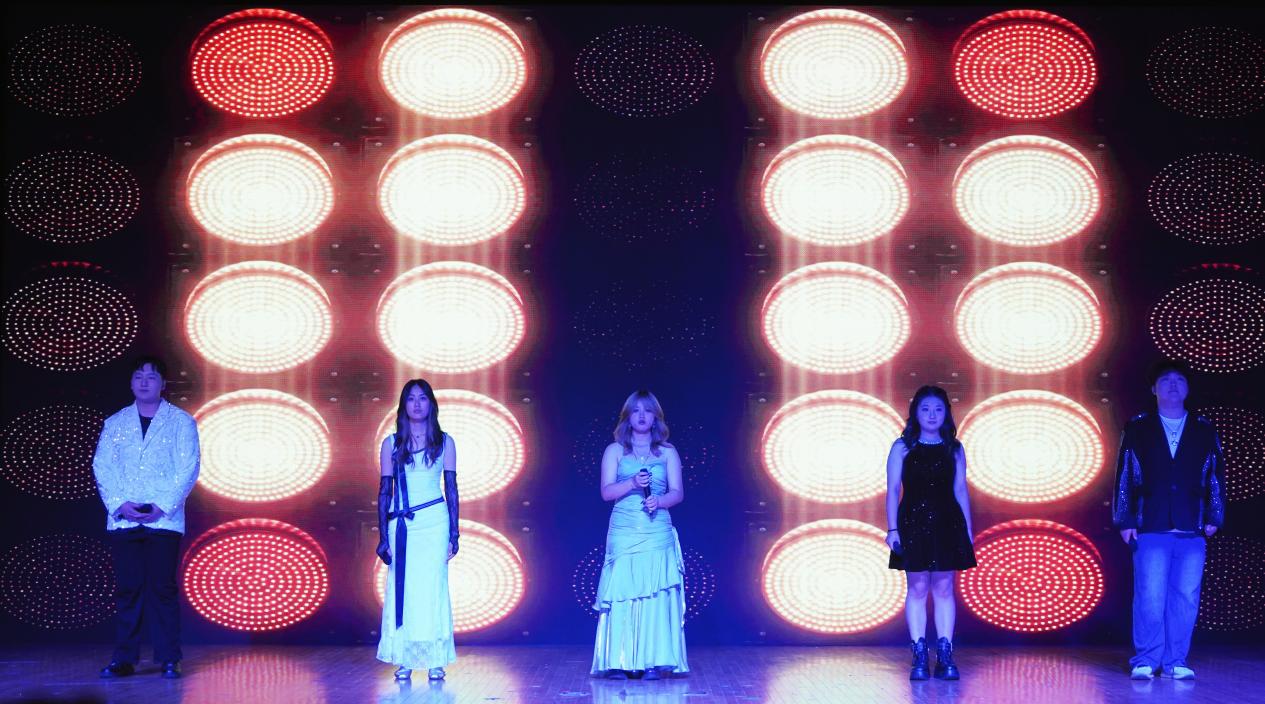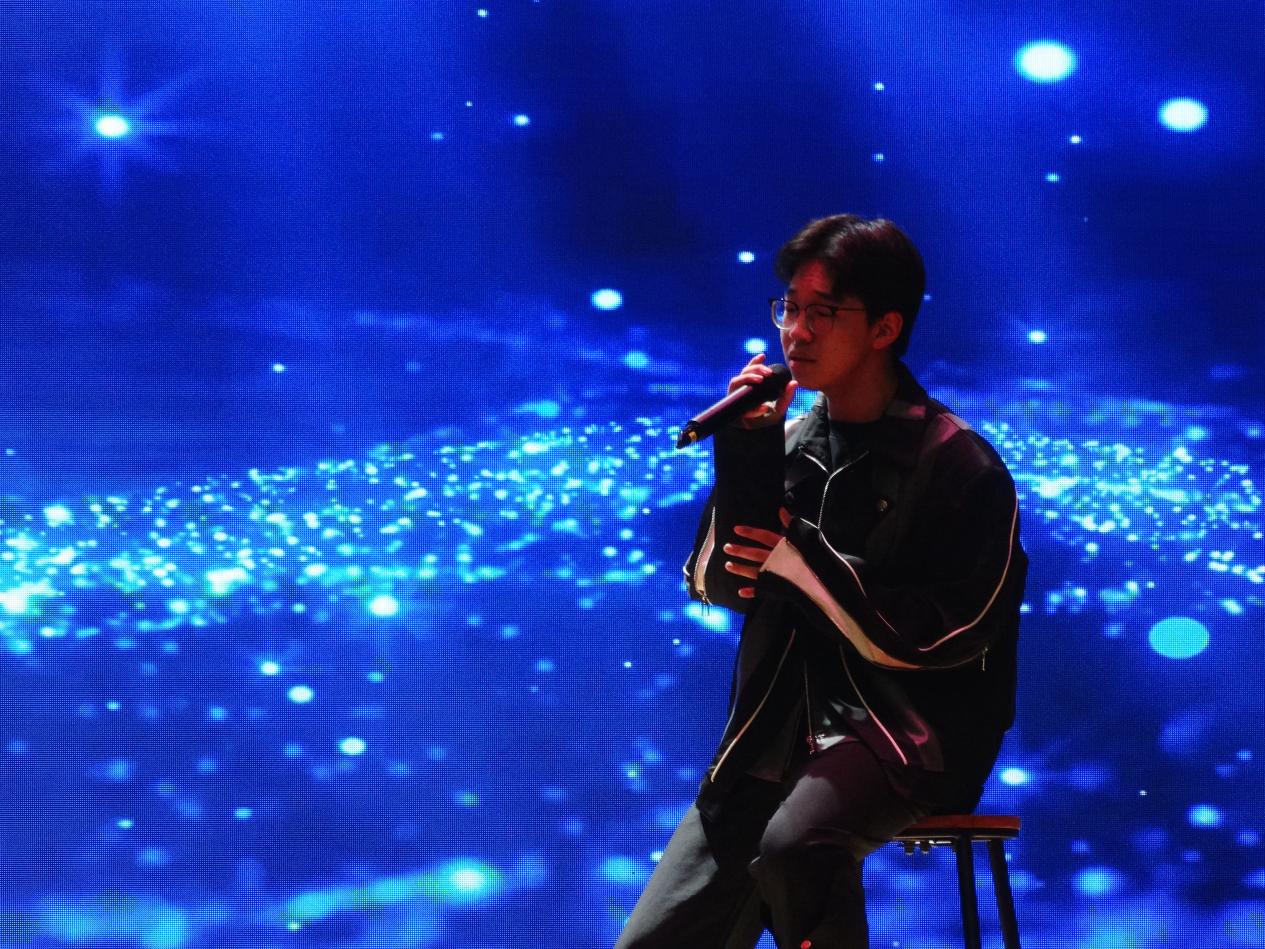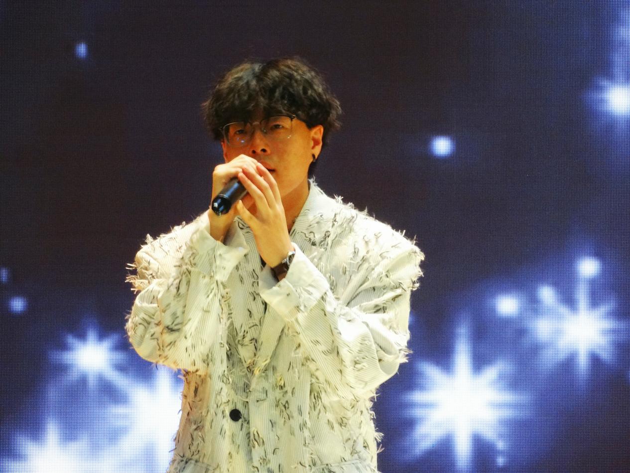 演出以《逆光》开场,激昂的节奏与充满力量的演唱瞬间点燃现场,展现出追光者在逆境中奋勇前行的决心,鼓舞着每一位观众勇敢直面生活挑战;《苏州河》舒缓悠扬的旋律如潺潺流水般流淌,温柔的嗓音诉说着河畔故事,将观众带入静谧而浪漫的氛围,勾起对美好过往的回忆;英文歌曲《Someone Like You》深情款款,演唱者极具感染力的嗓音诠释出爱情的遗憾与释怀,引发情感共鸣;民谣《阿嬷》以质朴的歌词搭配温暖的旋律,勾勒出记忆中阿嬷的慈祥模样,充满浓郁的乡愁,唤起大家对亲人的思念之情;歌曲《命运》磅礴的气势和激昂的旋律如命运的叩击,唱出与命运顽强抗争的不屈精神;轻快俏皮的《莫怕莫怕》以灵动的节奏和活泼的演绎,传递出乐观积极的生活态度,为现场带来阵阵欢笑;《梦的光点》旋律清新明快,歌声中饱含对梦想的憧憬与追求,点燃了少年心中的希望之火;合唱《世界赠予我的》将整场演出推向了高潮,和谐的和声与真挚的情感,表达了对世界的感恩与热爱,让在场的每一位观众感受到了音乐的魅力与温暖。