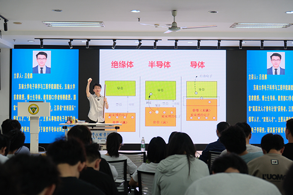 近日,由电子与计算机工程学院举办的“一粒沙中看世界——从诺贝尔奖看半导体与集成电路的发展”学术讲座成功举行。本次讲座邀请到了东南大学电子科学与工程学院副院长、知名学者吕俊鹏教授担任主讲嘉宾,众多师生齐聚一堂,共同领略半导体与集成电路领域的前沿知识与诺贝尔奖背后的科学故事。