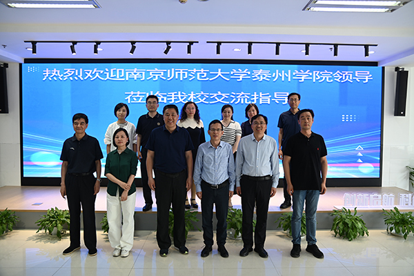 5月19日,南京师范大学泰州学院常务副院长储志东带队来我校调研交流。我校常务副院长黄学良、副院长戴玉蓉热情接待了兄弟院校一行,相关职能部门负责同志参加了座谈与交流。